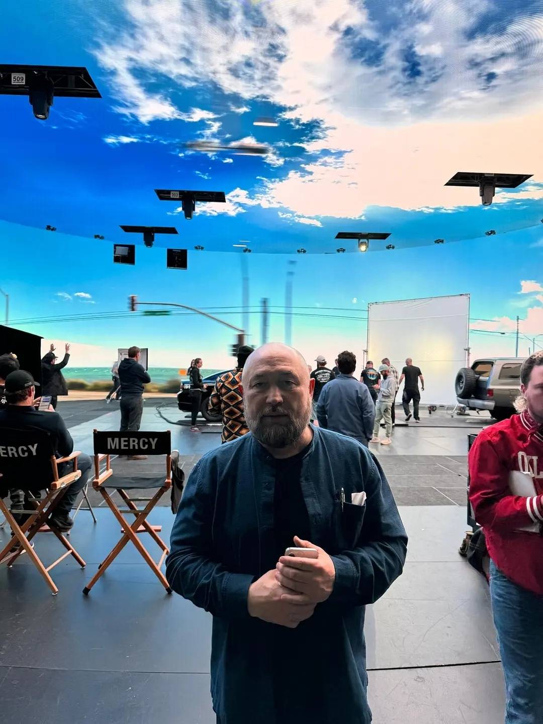 克里斯·帕拉特对着摄像机(即AI法官的视角)独白,而饰演AI法官马多克斯的丽贝卡·弗格森则在另一空间。“我是在对着摄像机说台词,丽贝卡在另一个区域,我透过耳机听到她的台词。”这种“表演的隔离”让观众身临其境地感受到,与一个无处不在却又虚无缥缈的系统对抗的终极孤独。