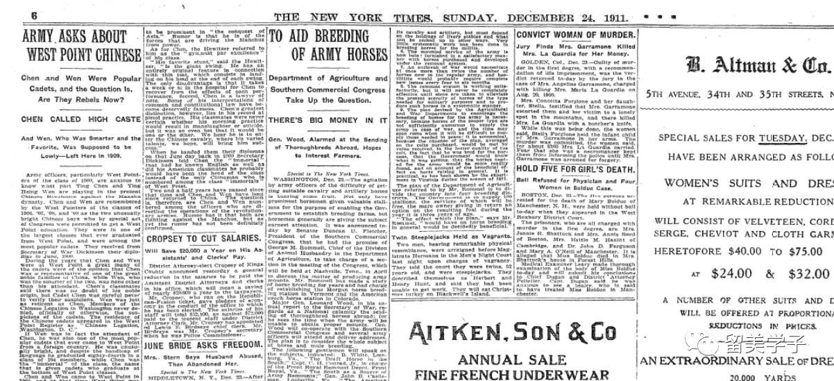 1905年报导温应星和陈廷甲入读西点军校,是该校首度接纳中国学生。(翻摄自)